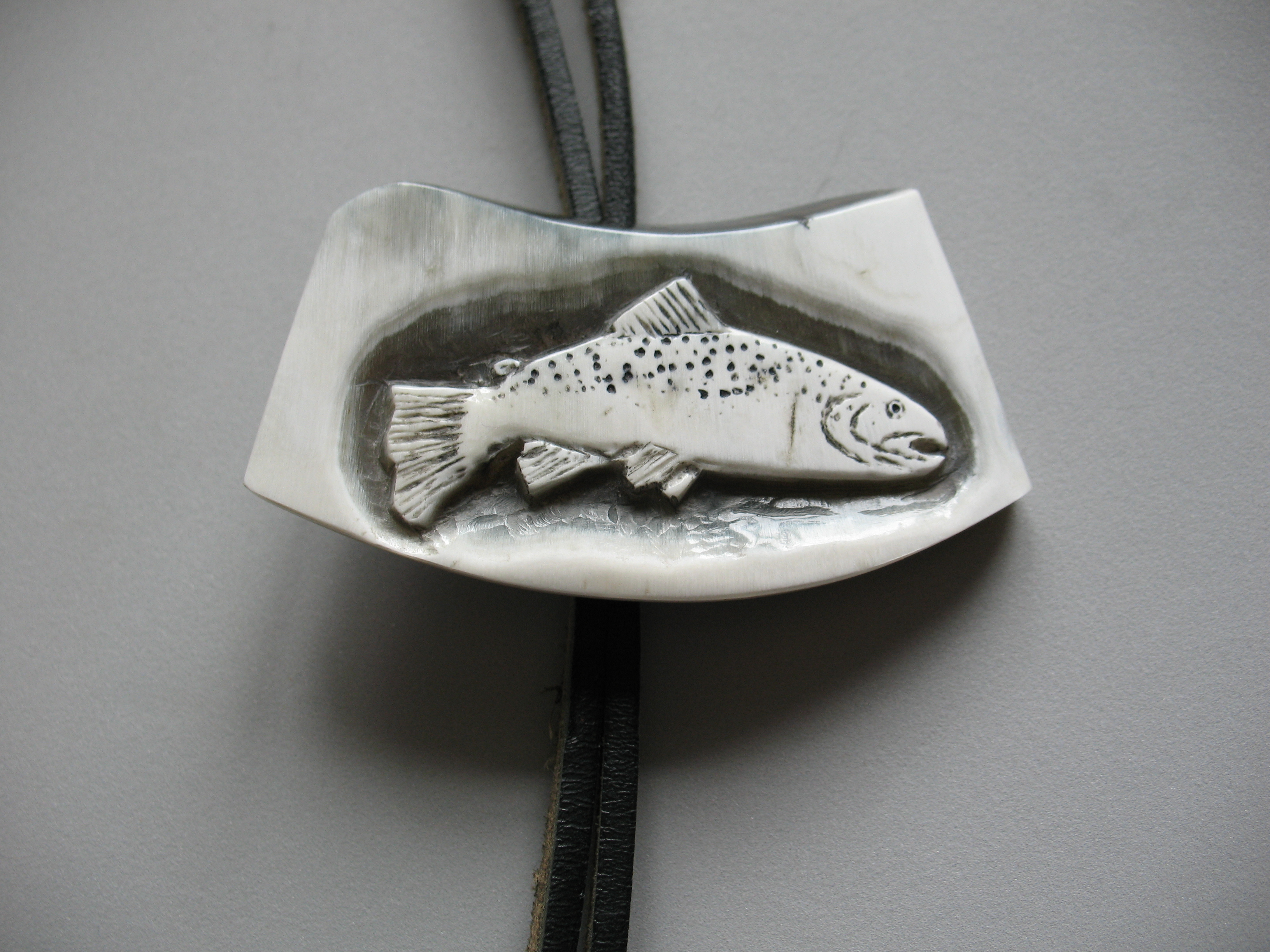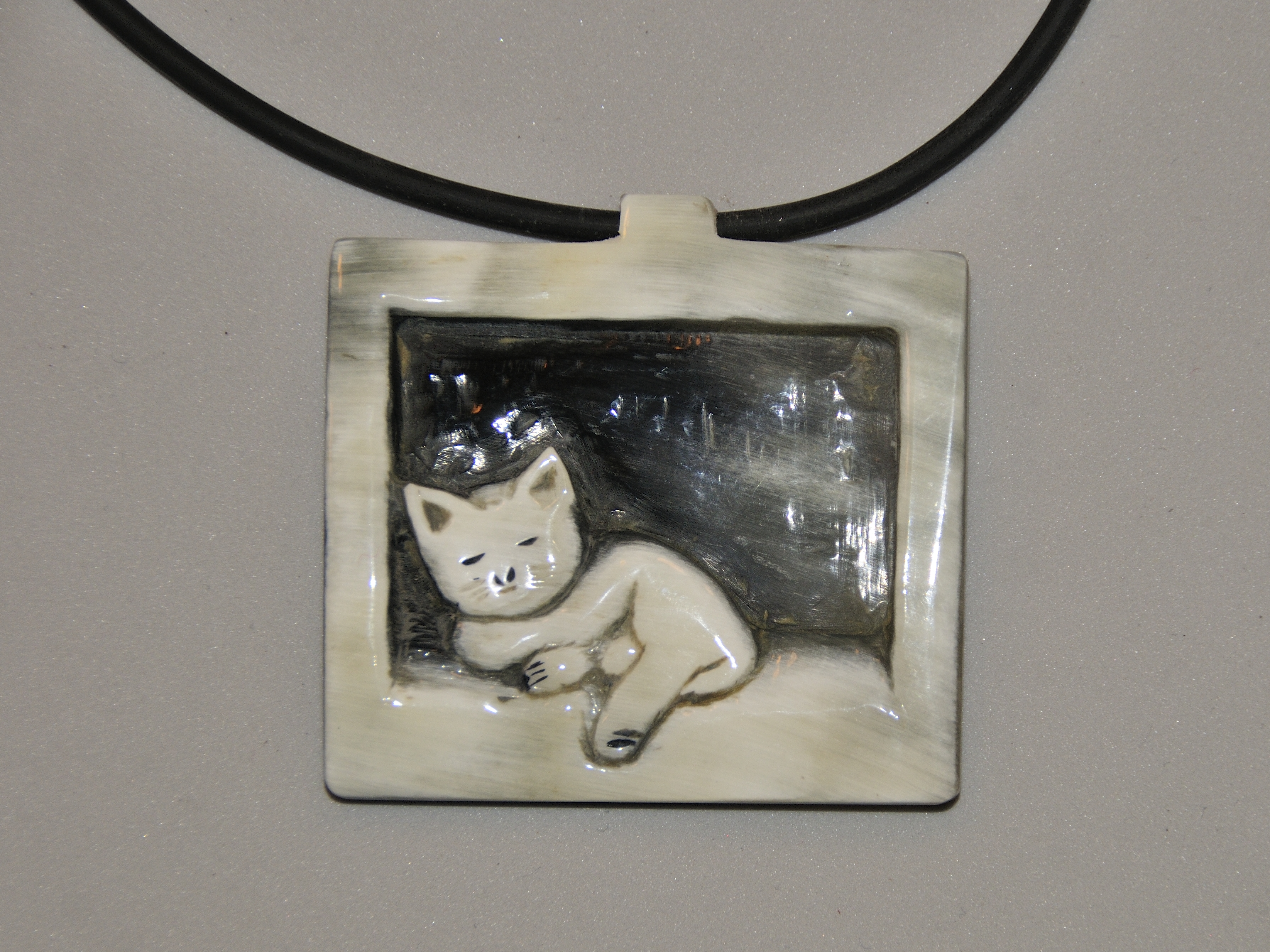 Kuhhorn-Anstecker mit Mythen-Sujet