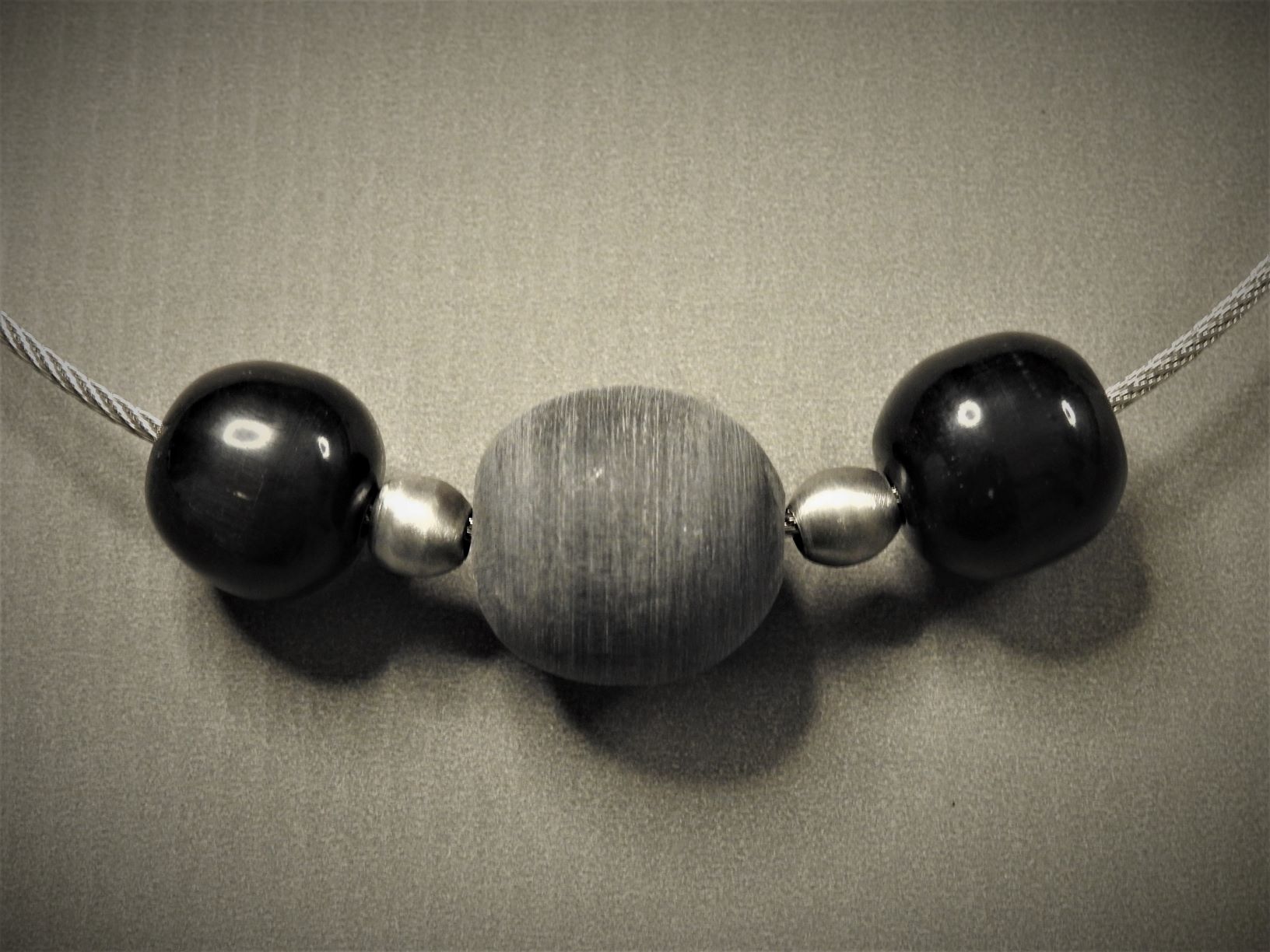 Kette mit Kugeln aus Kuhhorn und Stahl